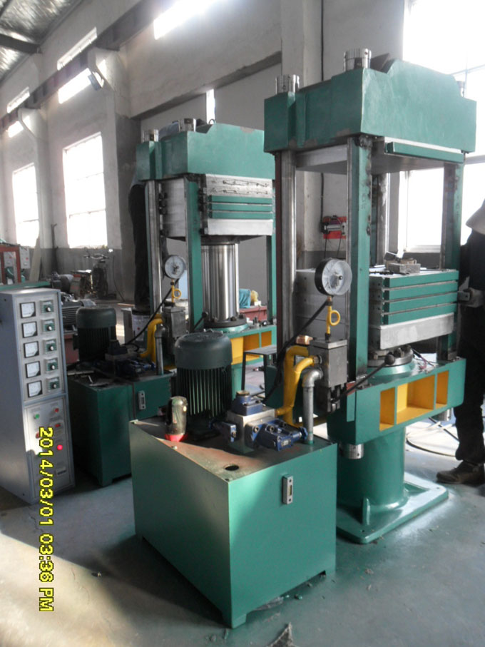 適用于硫化各種橡膠塑料模型制品和非模型制品。平板硫化機柱塞在工作液壓力作用下上升,柱塞下降(即熱板開啟)靠熱板、平臺及柱塞自重,驅使工作液流回儲油箱,達到下降(即開啟)的目的。硫化機的油缸中放置有用耐油橡膠制成的密封圈,在硫化機工作中起密封作用。硫化機的組合油泵是本機工作的動力源,它供給具有一定壓力的工作液。硫化機工作液經控制閥進入油缸,將操縱手柄撥到不同的位置,平板硫化機的柱塞即可上升或下降。